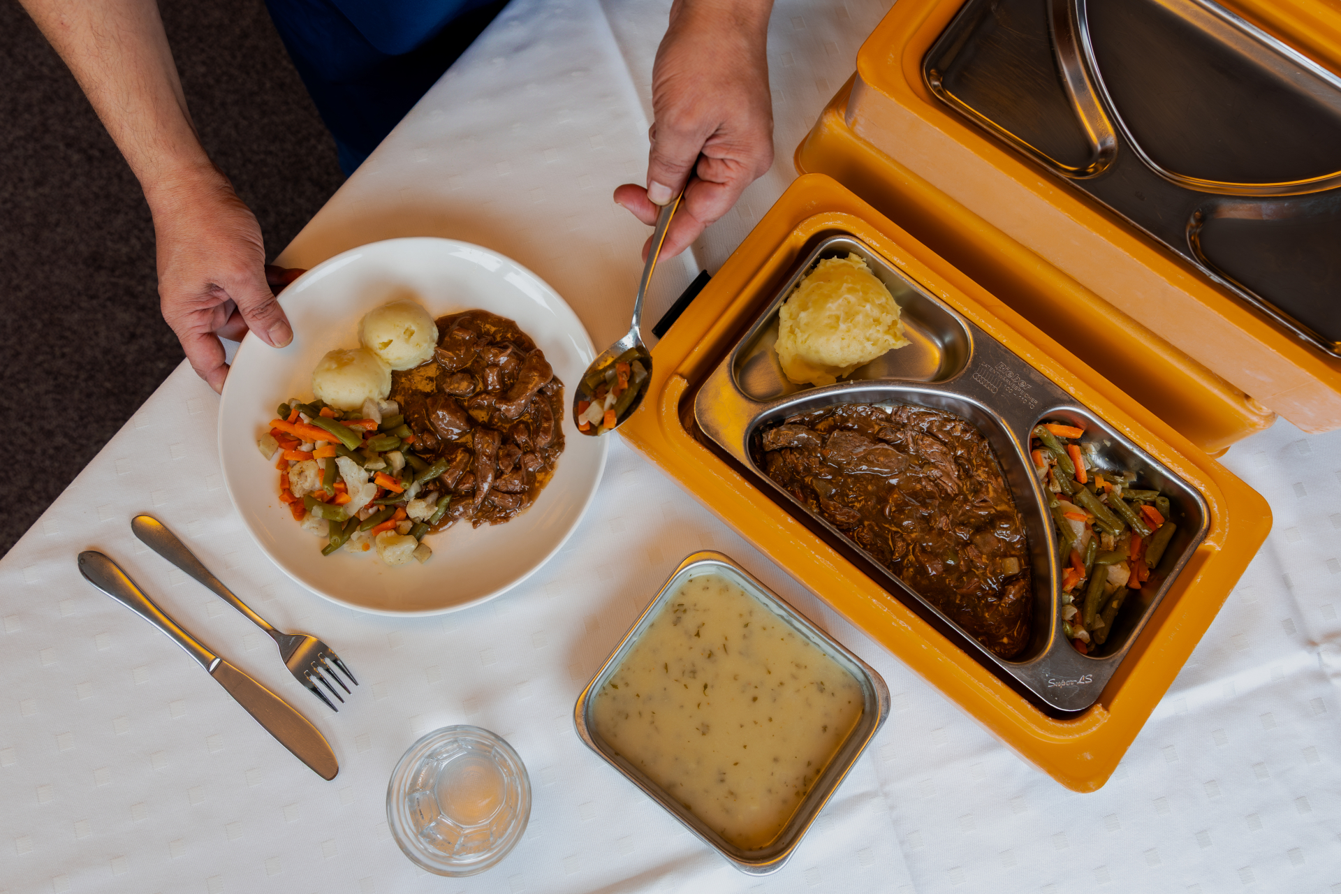 De maaltijden worden iedere dag vers bereid in onze eigen keuken en we werken met een keuzemenu. U kunt altijd kiezen uit verschillende soorten soep, een hoofdgerecht met verschillende verse groenten en u kunt kiezen uit diverse soorten vlees of vis. Beek & Bos houdt bij de samenstelling van het menu rekening met mogelijke individuele wensen.